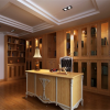 顶棚处理方面既能体现出欧式风格一惯的厚重大气,又在细节方面展现出了低调含蓄的简洁之风,两者做到了有效的统一,自然天成,浑然一体。同时,与墙壁连接处的线条勾勒,配合着欧式造型墙纸的拼贴,加上地面色彩的调和,整体彰显从容不迫、沉着稳重的气息。