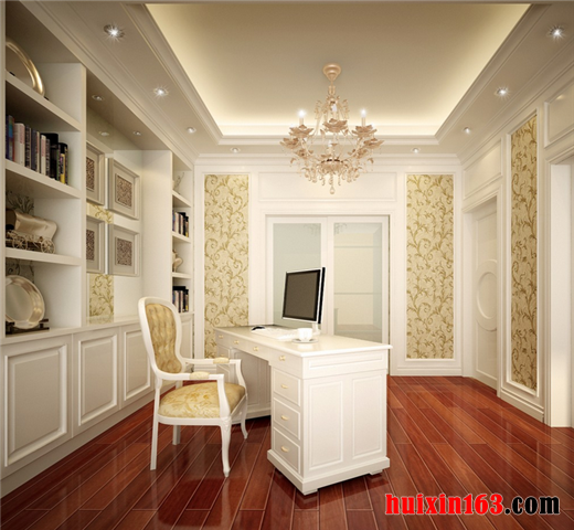 顶棚处理方面既能体现出欧式风格一惯的厚重大气,又在细节方面展现出了低调含蓄的简洁之风,两者做到了有效的统一,自然天成,浑然一体。同时,与墙壁连接处的线条勾勒,配合着欧式造型墙纸的拼贴,加上地面色彩的调和,整体彰显从容不迫、沉着稳重的气息。