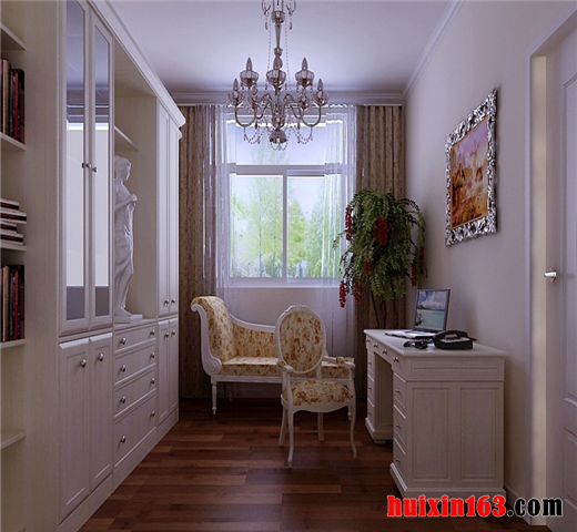 顶棚处理方面既能体现出欧式风格一惯的厚重大气,又在细节方面展现出了低调含蓄的简洁之风,两者做到了有效的统一,自然天成,浑然一体。同时,与墙壁连接处的线条勾勒,配合着欧式造型墙纸的拼贴,加上地面色彩的调和,整体彰显从容不迫、沉着稳重的气息。