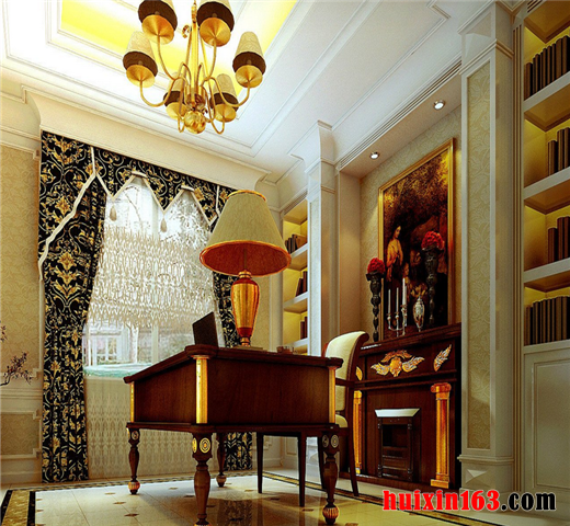 顶棚处理方面既能体现出欧式风格一惯的厚重大气,又在细节方面展现出了低调含蓄的简洁之风,两者做到了有效的统一,自然天成,浑然一体。同时,与墙壁连接处的线条勾勒,配合着欧式造型墙纸的拼贴,加上地面色彩的调和,整体彰显从容不迫、沉着稳重的气息。