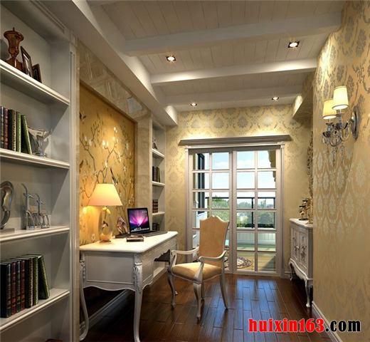 顶棚处理方面既能体现出欧式风格一惯的厚重大气,又在细节方面展现出了低调含蓄的简洁之风,两者做到了有效的统一,自然天成,浑然一体。同时,与墙壁连接处的线条勾勒,配合着欧式造型墙纸的拼贴,加上地面色彩的调和,整体彰显从容不迫、沉着稳重的气息。