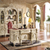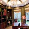 顶棚处理方面既能体现出欧式风格一惯的厚重大气,又在细节方面展现出了低调含蓄的简洁之风,两者做到了有效的统一,自然天成,浑然一体。同时,与墙壁连接处的线条勾勒,配合着欧式造型墙纸的拼贴,加上地面色彩的调和,整体彰显从容不迫、沉着稳重的气息。