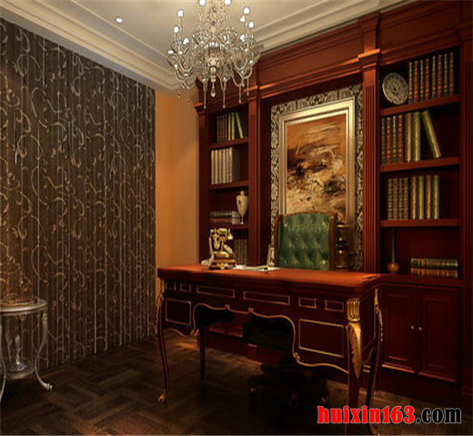 细节处理方面讲究干练自然,以很好的表现设计主题为目的,强调欧式风格的理念存在,把欧式风格系列家装的精髓之处,充分用在书房的处理上,意在体现书房的高雅气质,同时,将欧式风格的理念表现出来。整体处理和谐统一、协调一致。表现出宁静自然、优雅和谐的氛围。