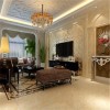 墙面处理在色彩运用方面很好的体现了墙纸的特征,并且与设计理念很好的结合在一起,整套四居室所有职能空间诸如建材选择、空间布局、色彩搭配、家居配饰等诸多元素,都只为营造合乎现代生活起居和业主心愿的起居空间。
