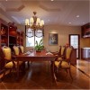 色彩运用方面讲究总体均衡的原则,同时,和其它相关设计主体进行有效配合,相互映衬,相得益彰。设计师利用明朗的空间布局原理,将温馨舒适、自然流畅的格局划分,配合与主题相吻合的家具配饰的点缀,努力营造出了风格鲜明的四居室装饰装修设计效果。
