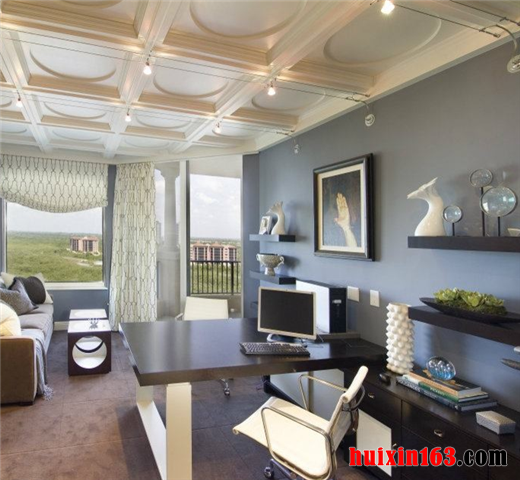 通体表现自然天成、优雅从容。设计师根据业主的详细表达,最终确定了此套设计风格,理念是以欧式系列家装为基调,揉和一些符合业主特质的元素符号,进行整合处理,同时,欧式书房的内在气质通过线条的勾勒和色彩的铺垫,加上地面、墙面和顶棚的协调处理,全面表现出来。
