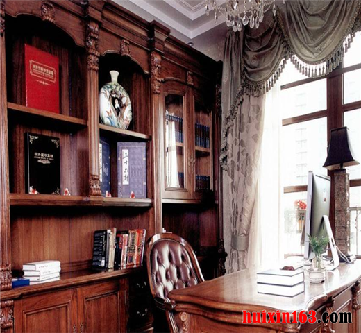 通体表现自然天成、优雅从容。设计师根据业主的详细表达,最终确定了此套设计风格,理念是以欧式系列家装为基调,揉和一些符合业主特质的元素符号,进行整合处理,同时,欧式书房的内在气质通过线条的勾勒和色彩的铺垫,加上地面、墙面和顶棚的协调处理,全面表现出来。