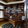 和谐自然的环境布置,使得整个职能空间有种浑然天成的宁静之感,十分符合书房的功能性设计。空间氛围对装修效果格外重要。而此种欧式风格书房的装修效果,既能体现出欧式家装的特征,又将书房的书卷气息和舒适温馨的实用性功能结合在一起,达到了良好的效果。