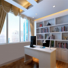 和谐自然的环境布置,使得整个职能空间有种浑然天成的宁静之感,十分符合书房的功能性设计。空间氛围对装修效果格外重要。而此种欧式风格书房的装修效果,既能体现出欧式家装的特征,又将书房的书卷气息和舒适温馨的实用性功能结合在一起,达到了良好的效果。
