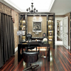 和谐自然的环境布置,使得整个职能空间有种浑然天成的宁静之感,十分符合书房的功能性设计。空间氛围对装修效果格外重要。而此种欧式风格书房的装修效果,既能体现出欧式家装的特征,又将书房的书卷气息和舒适温馨的实用性功能结合在一起,达到了良好的效果。