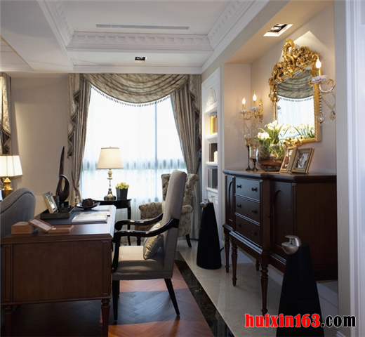 业主喜欢此风格的原因是因为自己的欧洲留学经历。对欧式风格的家装理念已经深入他的内心,设计师了解到这些之后,当然责无旁贷的做忠人之事了。在实际操作中,依托空间和户型的优势,利用线条和色彩的协同处理,努力营造欧式书房的优雅从容之气质,收到了良好的效果。
