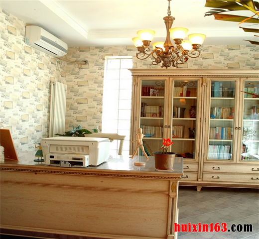 设计师通过此案很好的把握住了此种风格的设计理念,以厚重大方,优雅别致的基调惯始终。无论是色彩和线条的处理,或者是地面、墙面、顶棚的材质选择,再或者是三者的色调构成,都讲究协调统一的处理原则,同时,和书房家具配置的点缀相辅相承,呈现统一的布局力度。