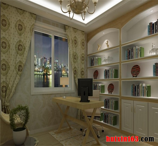 设计师通过此案很好的把握住了此种风格的设计理念,以厚重大方,优雅别致的基调惯始终。无论是色彩和线条的处理,或者是地面、墙面、顶棚的材质选择,再或者是三者的色调构成,都讲究协调统一的处理原则,同时,和书房家具配置的点缀相辅相承,呈现统一的布局力度。
