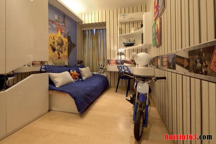 业主表达了对家庭特别是孩子的关爱之情,想通过在儿童房的装饰装修设计中,体现出自己浓浓的爱意,同时又能使此职能空间能带给孩子美好的想像空间和创造力。因此,无论在儿童家具配饰、玩具、建材等方方面,设计师都充分协调了业主的想法和实际操作空间等诸多因素,来进行统一布局。