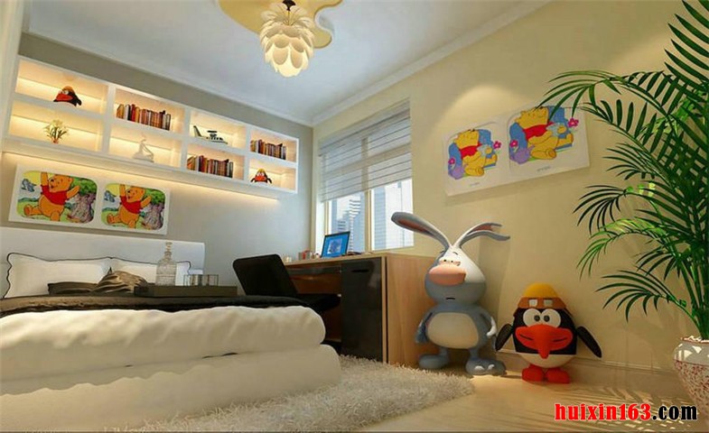 此套设计以极富感染力的色彩来对整体职能空间进行渲染,依托区域空间的实际特点,利用简洁的地面处理,光滑的墙面处理,加上具有深意的顶棚处理,三者协调统一,相互配合,希望符合孩子这一人生特殊阶段对于美好家居环境的理解,同时根据业主的想法,加入孩子平常比较喜欢的彩和元素,使整体和谐自然,美好欢乐。 更多»推荐家装效果图