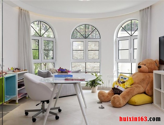 现在的儿童具有鲜明的时代特征,现代风格儿童房的装饰装修设计当然要遵循这样一种理念,以极具现代感染力的家具配饰来妆点空间,运用富有现代气息的色彩和线条来进行勾勒和诠释,发挥科学的设计创作思想,以严谨的方法论来统筹布局,分别在地面处理、墙面处理、顶棚处理等相关方面,做了具有针对性的设计。