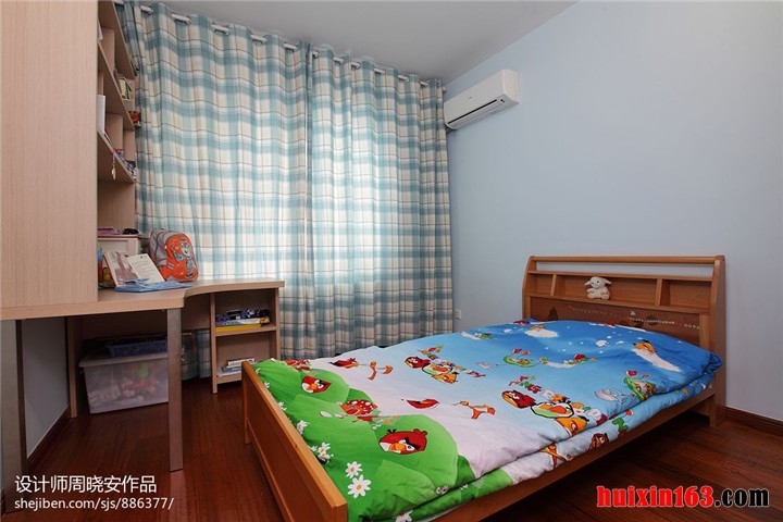 该案例以童年的天真情怀为基调,色彩构成方面以烂漫多变的搭配处理为依托,线条勾勒简洁流畅,地面处理干脆利落,配合着墙面的干净自然,加上顶棚的干练挥洒,三者相互配合,协调统一,相映成趣。总体彰显活泼可爱、彰然有序的设计理念,既体现了孩子的顽皮可亲,也使安全健康的家居效果得以发挥。