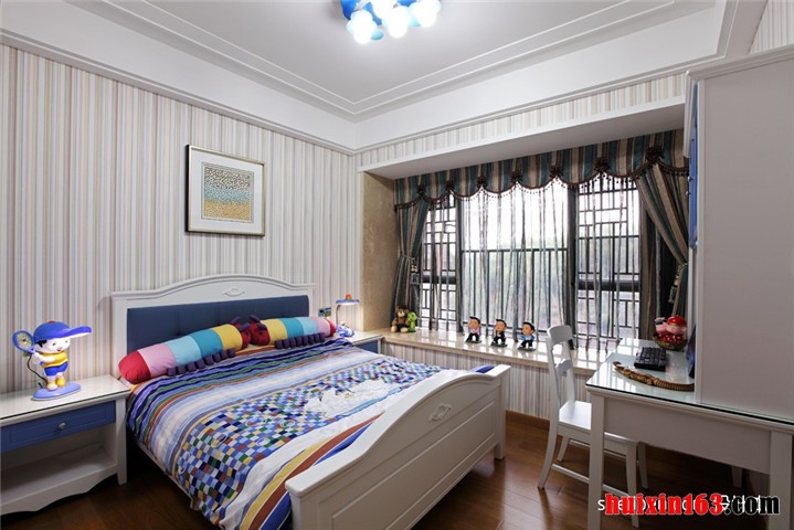 空间布局科学合理,看起来十分精巧和灵活的职能空间构成,使家具配饰品妆点在其中,显得更加具有灵动性,案例以挥洒自如的色彩构成,配合具有天真烂漫的线条处理,协调极具童趣的少年情怀,以饱满的线条勾勒,营造了一个温馨舒适,热情灵活的儿童房效果。 更多»推荐家装效果图