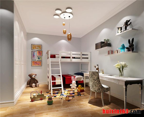 整体色彩以极富童趣的理念活泼的展开,设计师根据儿童顽皮可爱的特点,依托空间和户型的优势,将灵活的线条勾勒和可爱的色彩处理巧妙的结合在一起,使整个房间看起来动感十足,充分考虑了孩子的天性和生活作息的协调处理,让关爱下一代成长的主题得以在此案例中找到出发点。 更多»推荐家装效果图