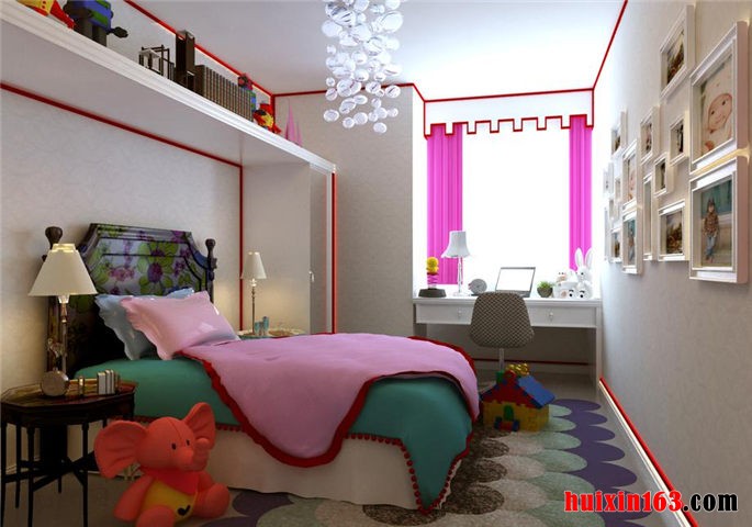 整体色彩以极富童趣的理念活泼的展开,设计师根据儿童顽皮可爱的特点,依托空间和户型的优势,将灵活的线条勾勒和可爱的色彩处理巧妙的结合在一起,使整个房间看起来动感十足,充分考虑了孩子的天性和生活作息的协调处理,让关爱下一代成长的主题得以在此案例中找到出发点。