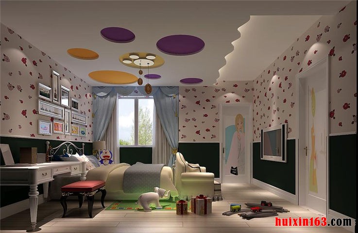 家具配饰方面,毫无疑问的选择与童年生活相符合的造型和款式,同时,讲究安全和健康的材料为前题。协调合理的空间布局,精致的线条处理,加上灵活的色彩表达,使整个职能空间表现的精彩别致,小巧灵活,温馨舒适。