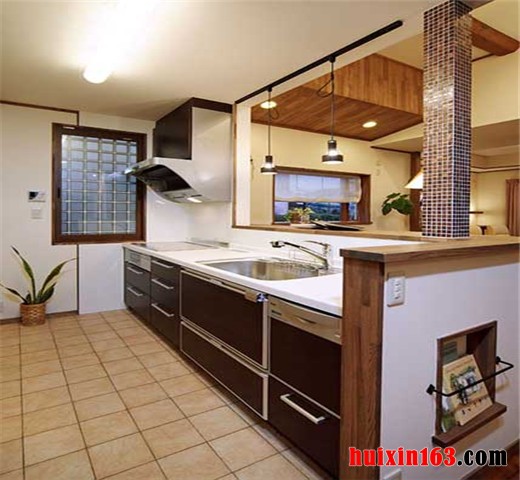 厨房的处理方面,无论是开房式的处理,还是讲究实用性和功能性的处理,都表现出了一目了然,方便实用的特征。十分符合日式系列家装的特点。墙壁厚重而富有自然的气息,色彩的协调处理加上窗户的特别处理,有效的调节了整个职能空间内的光线布局。