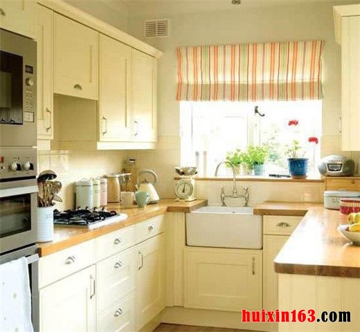 木质厨房用具的尽情投入、流畅发挥,使整个职能空间显现出一种自然天成的大自然气息。让人仿佛置身于大自然之中,可以自由的呼吸新鲜空气,宁静自然之感是不言而喻的。这种装修风格运用在厨房的装饰装修设计当中,是极为巧妙的处理。整体和谐自然,协调统一。