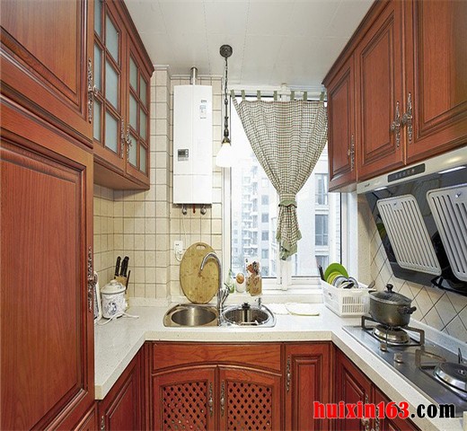 木质厨房用具的尽情投入、流畅发挥,使整个职能空间显现出一种自然天成的大自然气息。让人仿佛置身于大自然之中,可以自由的呼吸新鲜空气,宁静自然之感是不言而喻的。这种装修风格运用在厨房的装饰装修设计当中,是极为巧妙的处理。整体和谐自然,协调统一。