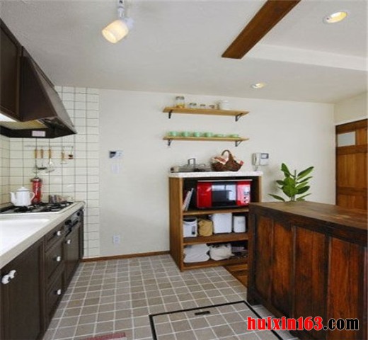 木质厨房用具的尽情投入、流畅发挥,使整个职能空间显现出一种自然天成的大自然气息。让人仿佛置身于大自然之中,可以自由的呼吸新鲜空气,宁静自然之感是不言而喻的。这种装修风格运用在厨房的装饰装修设计当中,是极为巧妙的处理。整体和谐自然,协调统一。