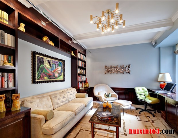 业主对于现代快节奏的生活理念有独到的见解和感悟,较有文化内涵,所以在家装的实际操作当中,充分发挥了自己的主观能动性,落实到具体的书房设计中,业主的主观意图发挥了一定的作用,从地面的处理到墙面的处理和顶棚的处理,都十分动感时尚,具有浓厚的现代气息。