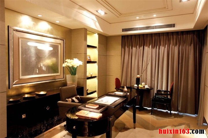 设计师充分揣摩客户的思想理念,根据现代风格的特点,依托空间的优势,利用色彩的整体掌控,发挥合理的空间布局,协调书房家具配饰的特点,努力营造出符合现代文化休闲理念的书房效果。在书房用具配饰方面,本着贴合现代读阅习惯的理念,进行完整的协调搭配,整体和谐自然,协调统一。