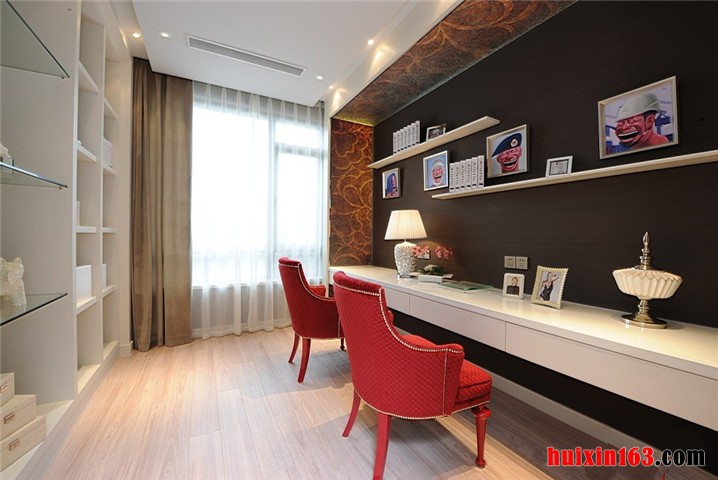 在书房的整体设计创作上,设计师和业主进行了很好的沟通,设计理念得到了业主的充分肯定,在色彩运用方面较为老练,符合现代风格的理念表达。线条勾勒清新自然,与书房的整体气质比较吻合。人们都知道应该在适当的时候进行充电,拥有这样一套书房,身处其中,阅古今名著,览圣贤名篇,能在百忙之中使身心得到升华。 更多»推荐家装效果图