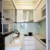 淡雅的基调是大部分日式系列家装所遵循的设计理念。设计中木质系列建材和厨房用具配置的使用,清晰可见的纹理表现,清幽的日式气息弥漫在空气中,这种情调,十分适合就餐的气氛。顶棚的处理,给人以沉稳之感。各种贴近实际的设计,不仅节省了空间,而且还显得美观大方。