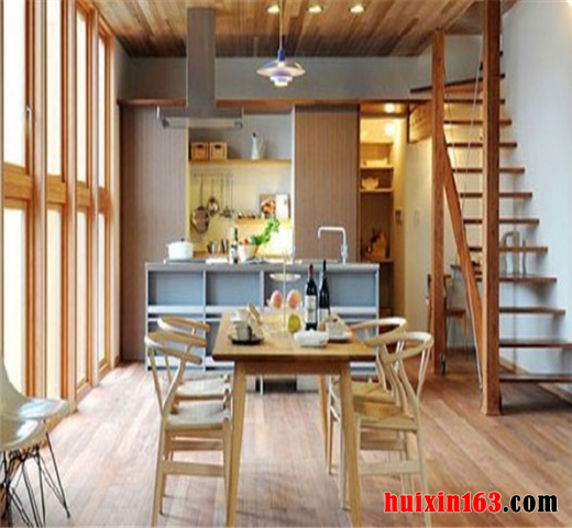 淡雅的基调是大部分日式系列家装所遵循的设计理念。设计中木质系列建材和厨房用具配置的使用,清晰可见的纹理表现,清幽的日式气息弥漫在空气中,这种情调,十分适合就餐的气氛。顶棚的处理,给人以沉稳之感。各种贴近实际的设计,不仅节省了空间,而且还显得美观大方。