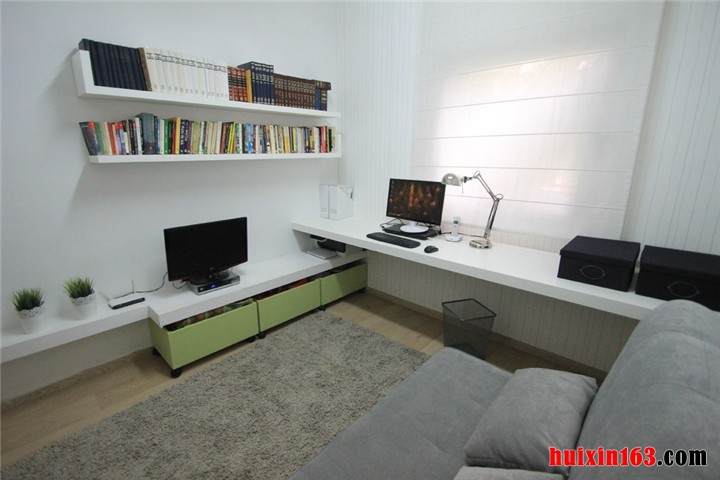 现代风格的书房设计理念,以贴合现代高速发展的物质文化和精神文化双重需要为依据。以古典和其它书房设计风格相协调,得以全新组合排例和科学发挥。设计师在案例中根据业主的意愿,全面运用色彩平衡原理,使此套书房设计彰显安静优雅、淡然别致的格调。顶棚处理和其它各处配合默契,相得益彰。