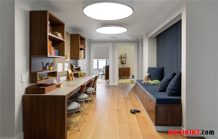 现代风格的书房设计理念,以贴合现代高速发展的物质文化和精神文化双重需要为依据。以古典和其它书房设计风格相协调,得以全新组合排例和科学发挥。设计师在案例中根据业主的意愿,全面运用色彩平衡原理,使此套书房设计彰显安静优雅、淡然别致的格调。顶棚处理和其它各处配合默契,相得益彰。