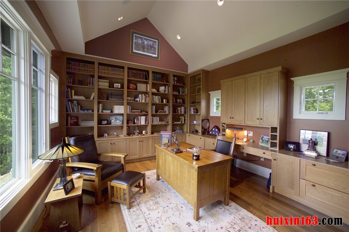 现代风格的书房设计理念,以贴合现代高速发展的物质文化和精神文化双重需要为依据。以古典和其它书房设计风格相协调,得以全新组合排例和科学发挥。设计师在案例中根据业主的意愿,全面运用色彩平衡原理,使此套书房设计彰显安静优雅、淡然别致的格调。顶棚处理和其它各处配合默契,相得益彰。