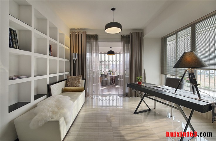 现代风格的书房设计理念,以贴合现代高速发展的物质文化和精神文化双重需要为依据。以古典和其它书房设计风格相协调,得以全新组合排例和科学发挥。设计师在案例中根据业主的意愿,全面运用色彩平衡原理,使此套书房设计彰显安静优雅、淡然别致的格调。顶棚处理和其它各处配合默契,相得益彰。