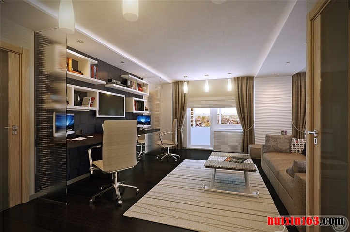 此套书房装修设计彰显简洁明快、清新自然的风格特点,色彩处理协调一致,书房家具配饰造型流畅动感,空间布局井然有序,整体搭配干脆利落、挥洒自如。业主具有很深的文化内涵,想在温馨舒适的、恬静优雅的家居环境当中,找到能使心灵得以超脱凡尘的宁静之感,设计师灵活的把握了客户的想法,运用科学的设计理念,使整体设计美观大方、时尚现代。