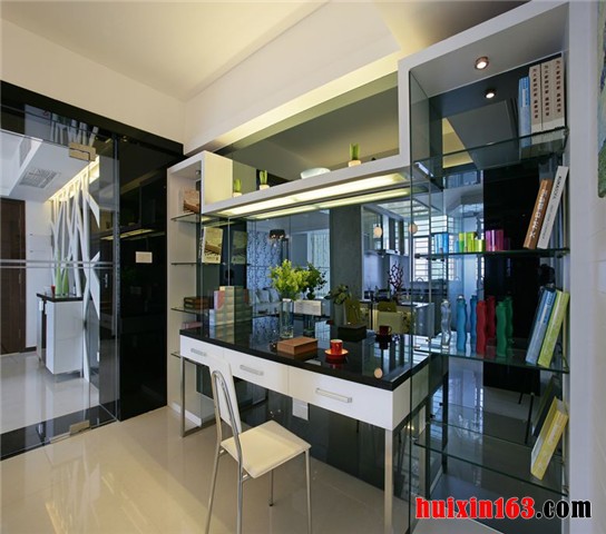 此套书房装修设计彰显简洁明快、清新自然的风格特点,色彩处理协调一致,书房家具配饰造型流畅动感,空间布局井然有序,整体搭配干脆利落、挥洒自如。业主具有很深的文化内涵,想在温馨舒适的、恬静优雅的家居环境当中,找到能使心灵得以超脱凡尘的宁静之感,设计师灵活的把握了客户的想法,运用科学的设计理念,使整体设计美观大方、时尚现代。