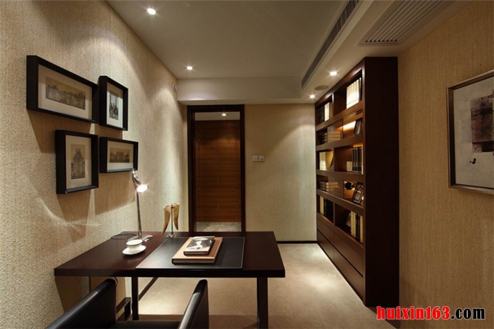 此套书房装修设计彰显简洁明快、清新自然的风格特点,色彩处理协调一致,书房家具配饰造型流畅动感,空间布局井然有序,整体搭配干脆利落、挥洒自如。业主具有很深的文化内涵,想在温馨舒适的、恬静优雅的家居环境当中,找到能使心灵得以超脱凡尘的宁静之感,设计师灵活的把握了客户的想法,运用科学的设计理念,使整体设计美观大方、时尚现代。