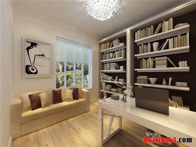 该案例以现代动感的理念进行创作设计,在实际操作过程中,设计方、施工方、业主三方进行了有效的沟通,确立了整体思路,营造了如图所示的效果。地板处理大气从容,墙面处理干净利落,吊顶处理简洁明快,整体协调错落有致,使书房的功能性得以体现的同时,又加入稍许舒适性的考虑,让二者得到有机的统一,构思巧妙,设计灵活