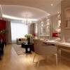 该案例以现代动感的理念进行创作设计,在实际操作过程中,设计方、施工方、业主三方进行了有效的沟通,确立了整体思路,营造了如图所示的效果。地板处理大气从容,墙面处理干净利落,吊顶处理简洁明快,整体协调错落有致,使书房的功能性得以体现的同时,又加入稍许舒适性的考虑,让二者得到有机的统一,构思巧妙,设计灵活
