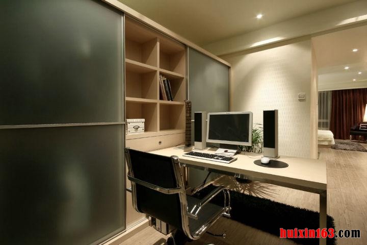 该案例以现代动感的理念进行创作设计,在实际操作过程中,设计方、施工方、业主三方进行了有效的沟通,确立了整体思路,营造了如图所示的效果。地板处理大气从容,墙面处理干净利落,吊顶处理简洁明快,整体协调错落有致,使书房的功能性得以体现的同时,又加入稍许舒适性的考虑,让二者得到有机的统一,构思巧妙,设计灵活