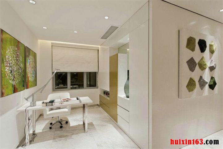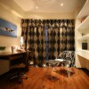 该案例以现代动感的理念进行创作设计,在实际操作过程中,设计方、施工方、业主三方进行了有效的沟通,确立了整体思路,营造了如图所示的效果。地板处理大气从容,墙面处理干净利落,吊顶处理简洁明快,整体协调错落有致,使书房的功能性得以体现的同时,又加入稍许舒适性的考虑,让二者得到有机的统一,构思巧妙,设计灵活