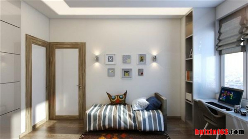 该案例以现代动感的理念进行创作设计,在实际操作过程中,设计方、施工方、业主三方进行了有效的沟通,确立了整体思路,营造了如图所示的效果。地板处理大气从容,墙面处理干净利落,吊顶处理简洁明快,整体协调错落有致,使书房的功能性得以体现的同时,又加入稍许舒适性的考虑,让二者得到有机的统一,构思巧妙,设计灵活