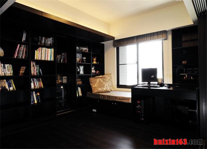 整体色调呈现明朗欢快、协调一致风格特点,现代风格的设计理念讲究贴合现代快节奏的生活特点,具体到书房的装修设计中,针对的是书房特定的区域空间。色彩选择方面,以高调的亮色和低调的暗色进行对比配置,或以其中一项做为点缀效果,看起来对比强烈,增加视觉冲击力,延伸空间视觉效果,起到了很好的作用。