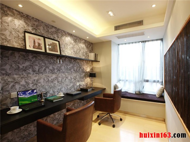 整体色调呈现明朗欢快、协调一致风格特点,现代风格的设计理念讲究贴合现代快节奏的生活特点,具体到书房的装修设计中,针对的是书房特定的区域空间。色彩选择方面,以高调的亮色和低调的暗色进行对比配置,或以其中一项做为点缀效果,看起来对比强烈,增加视觉冲击力,延伸空间视觉效果,起到了很好的作用。