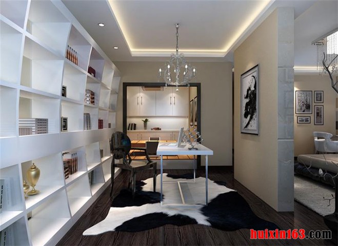 整体色调呈现明朗欢快、协调一致风格特点,现代风格的设计理念讲究贴合现代快节奏的生活特点,具体到书房的装修设计中,针对的是书房特定的区域空间。色彩选择方面,以高调的亮色和低调的暗色进行对比配置,或以其中一项做为点缀效果,看起来对比强烈,增加视觉冲击力,延伸空间视觉效果,起到了很好的作用。
