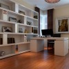整体色调呈现明朗欢快、协调一致风格特点,现代风格的设计理念讲究贴合现代快节奏的生活特点,具体到书房的装修设计中,针对的是书房特定的区域空间。色彩选择方面,以高调的亮色和低调的暗色进行对比配置,或以其中一项做为点缀效果,看起来对比强烈,增加视觉冲击力,延伸空间视觉效果,起到了很好的作用。